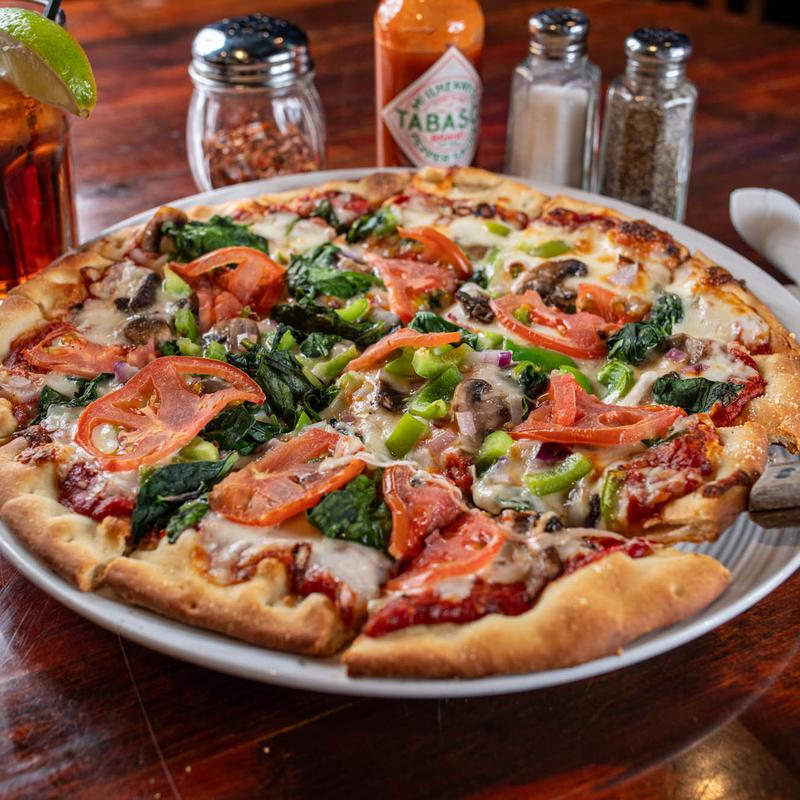 Small (12") $18.00 | Large (18") $32.00 • Spinach, mushroom, green pepper, sliced tomato