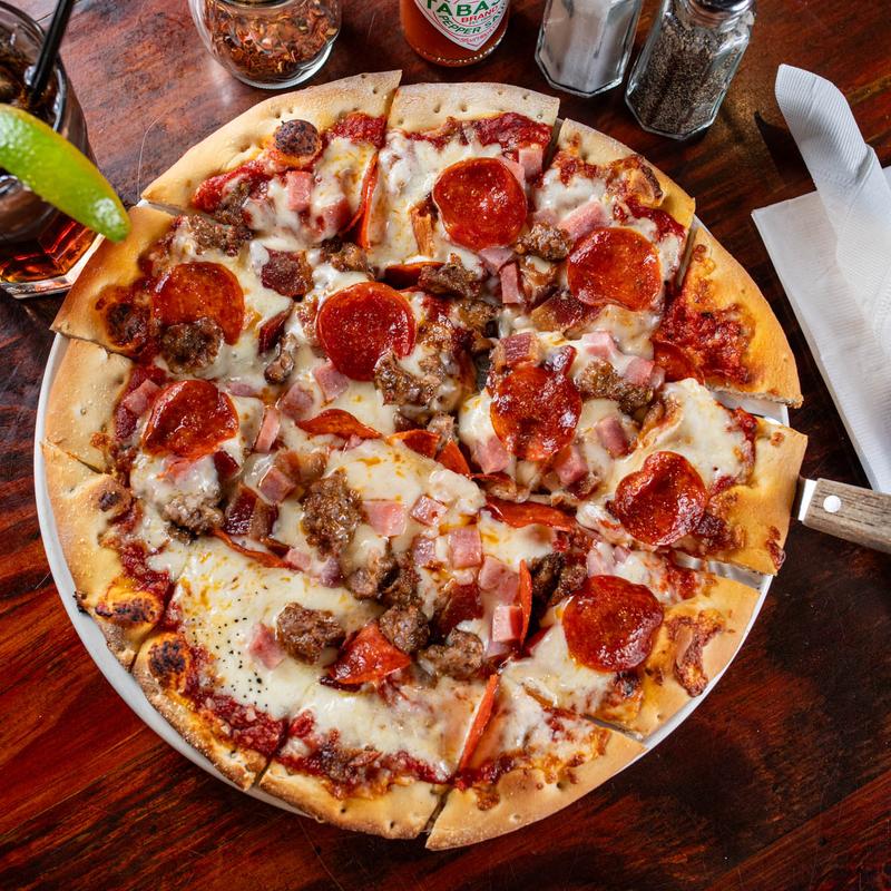 Small (12") $18.00 | Large (18") $32.00 • Pepperoni, sausage, bacon and ham.