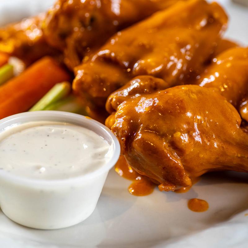 6 Wings $12.00 | 12 Wings $20.00 | 18 Wings $28.00 | 24 Wings $35.00 • Mild: Lemon Pepper (Dry Rub), Teriyaki, Barbecue | Medium: Spicy Buffalo, Buffalo Bleu, Cheesy Garlic Buffalo, Cajun (Dry Rub), Bonzai, Spicy Thai | Hot: Southwestern, Caribbean Jerk, Mango Habanero, Shock and Awe
