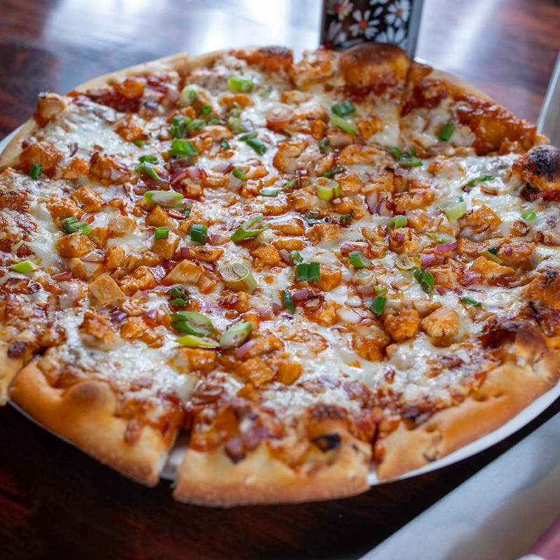Small (12") $18.00 | Large (18") $32.00 • Grilled chicken breast, red onion, and BBQ sauce.